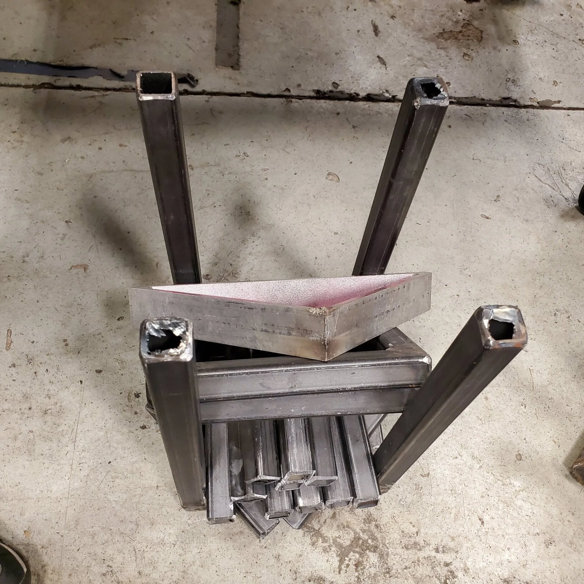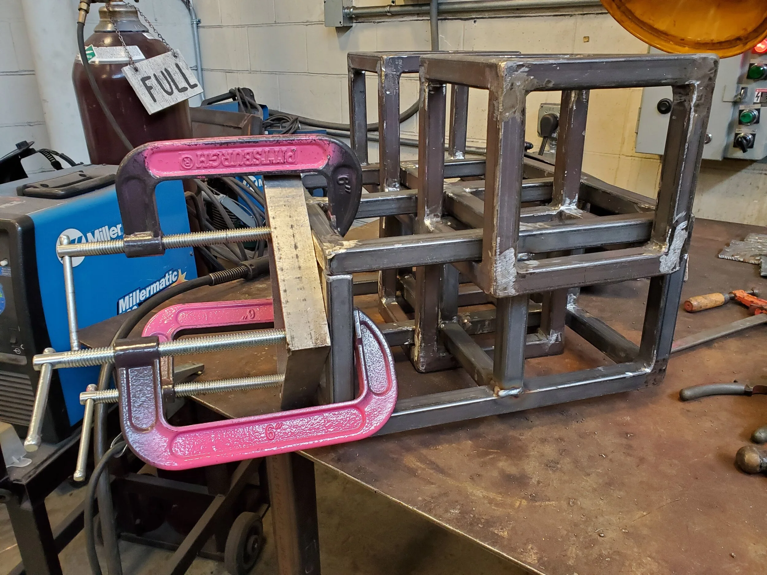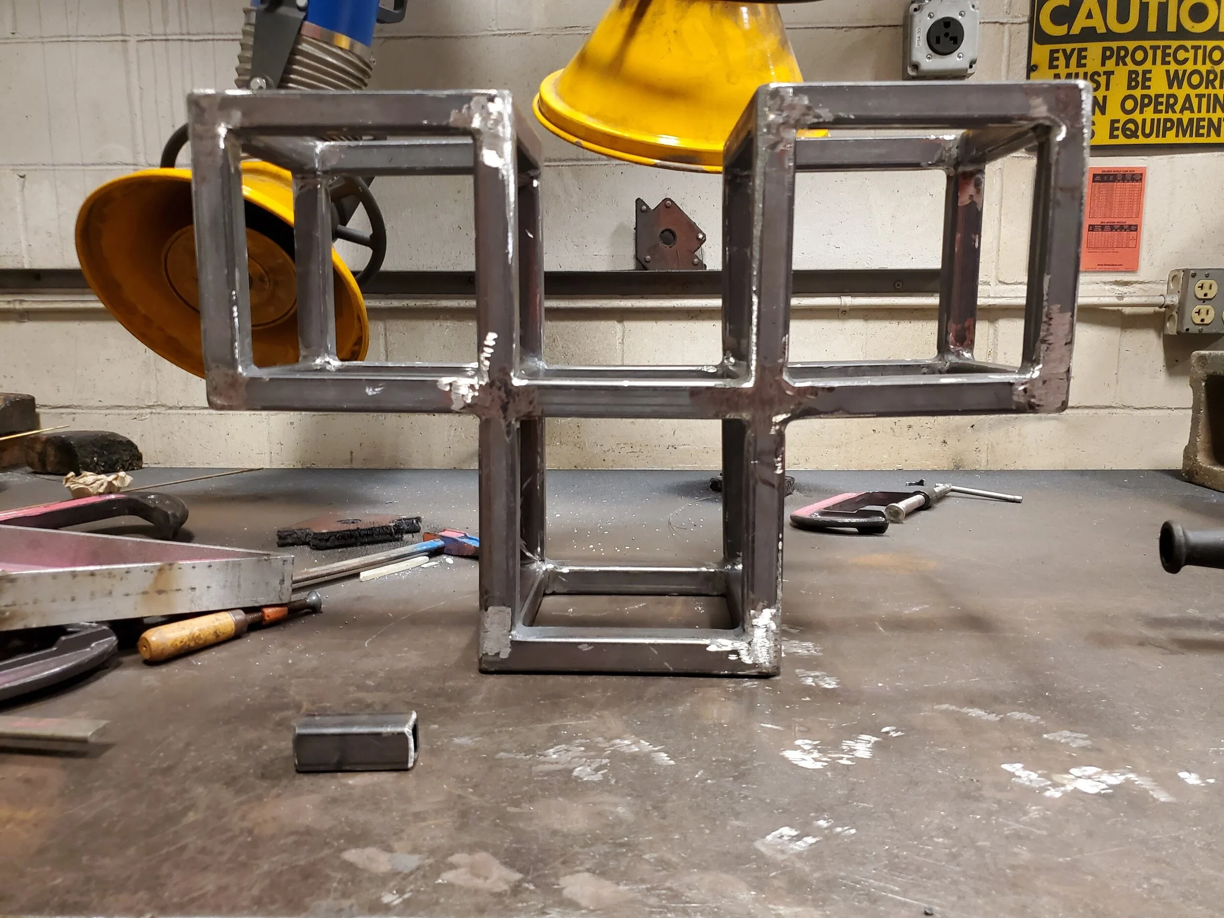 By this point I feel like a professional welder, so I had an easier time cutting and grinding the pieces for the next 4 cubes. I guess I got really into it this day because I got there at 9am for class and left at 7pm without even a snack break. I spent the morning section cutting, grinding, and setting up the base for the new cubes. After I got the bases down I wanted to be careful and plan each on out, so I’d be able to get in with a grinder and clean up. I started with the pieces that don’t intersect first to give it a solid starting point. After welding, grinding, and squaring that piece, I set it in the 3 cubes and started the first intersecting pipe, no going back now. I had to use a hammer to get some pieces in and had to fill others with mig wire, so my measurements may have been off by a few millimeters here and there. I got all but 5 bars of the final 4 cubes done, but I felt exhausted and needed food, so it rested in my head incomplete for the day while I drove off and got some Burger King.
