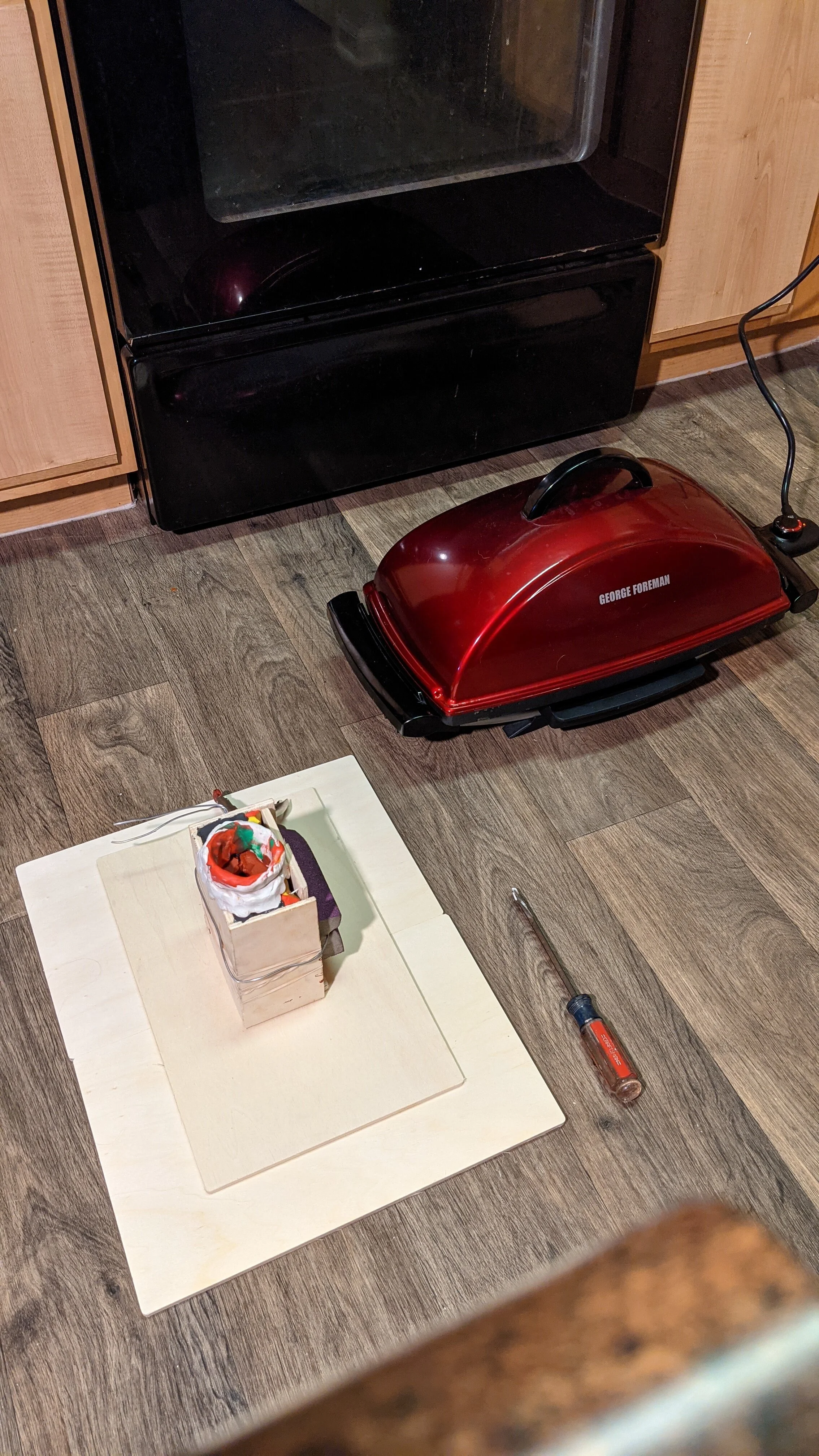 I went between my stove and mini grill to try and reach the temperature needed for the pewter to melt and it took a while. Eventually I just let it rest on the stove and mixed it up with a screwdriver until it was fully liquid.